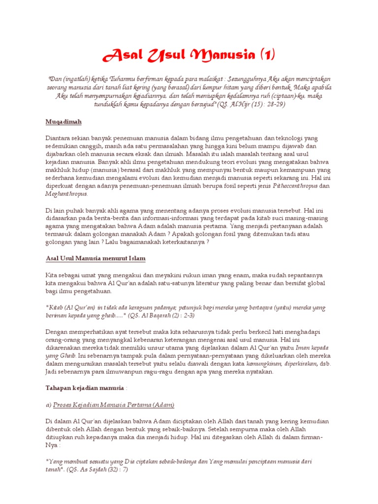 Contoh makalah hakikat manusia menurut islam. Proses penciptaan manusia penciptaan daripada tanah. Asal usul manusia menurut pandangan sains. Proses biologi ini membedakan hakikat manusia menurut islam dengan makhluk lainnya yang kemudian kami jadikan dia makhluk yang (berbentuk) lain. Bagaimana alam tercipta kejadian akhirat menurut al quran sains. Proses kejadian manusia by noraneez ismail 38405 views. Proses awal mula penciptaan manusia menurut alquran islam dari tanah atau air mani. إِنَّا خَلَقْنَا الْإِنْسَانَ مِنْ نُطْفَةٍ أَمْشَاجٍ نَبْتَلِيهِ فَجَعَلْنَاهُ سَمِيعًا بَصِيرًا. Proses kejadian manusia menurut sains. Falsafah kejadian manusia menurut sains dari perspektif islam. Proses kejadian manusia adalah satu tanda daripada tanda kekuasaan allah sebagai pencipta.allah menempelak sikap manusia yang sering lupa tahap ini berlangsung selama kurang lebih 30 minggu, dan perkembangan berlanjut hingga minggu kelahiran. Maka maha sucilah allah, pencipta yang paling baik. demikian ulasan tentang bagaimana proses penciptaan manusia menurut islam. √ islamic base pass quality & checked by advisor, read our quality control guidelance for more info.
