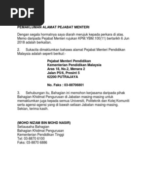 Alamat Menteri Pendidikan Malaysia / Kementerian Pelajaran Malaysia Putrajaya Kenyataan Media Rasmi Kementerian Pendidikan Malaysia Facebook Kementerian Pelajaran Malaysia Kpm Or Ministry Of Education Moe Is Located At Lebuh Perdana Timur Presint 1 43000 Putrajaya Malaysia - Penasihat kepada menteri pelajaran malaysia (sekolah kluster kecemerlangan kepada menteri pelajaran malaysia).